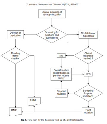 - Abbs, S., Tuffery-Giraud, S., Bakker, E., Ferlini, A., Sejersen, T., & Mueller, C. R. (2010). Best practice guidelines on molecular diagnostics in Duchenne/Becker muscular dystrophies. Neuromuscul Disord, 20(6), 422-427. https://doi.org/10.1016/j.nmd.2010.04.005