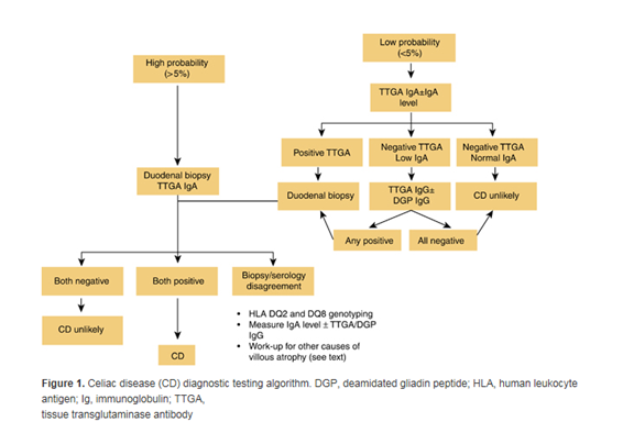 17. Husby, S., Koletzko, S., Korponay-Szabó, I., Kurppa, K., Mearin, M. L., Ribes-Koninckx, C., Shamir, R., Troncone, R., Auricchio, R., Castillejo, G., Christensen, R., Dolinsek, J., Gillett, P., Hróbjartsson, A., Koltai, T., Maki, M., Nielsen, S. M., Popp, A., Størdal, K., . . . Wessels, M. (2020). European Society Paediatric Gastroenterology, Hepatology and Nutrition Guidelines for Diagnosing Coeliac Disease 2020. J Pediatr Gastroenterol Nutr, 70(1), 141-156. https://doi.org/10.1097/mpg.0000000000002497